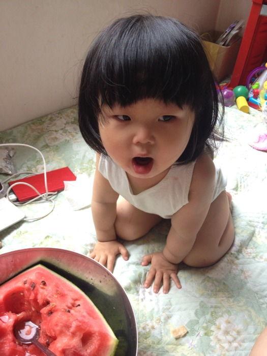 萌宝吃瓜瞬间一:小家伙的“瓜”情